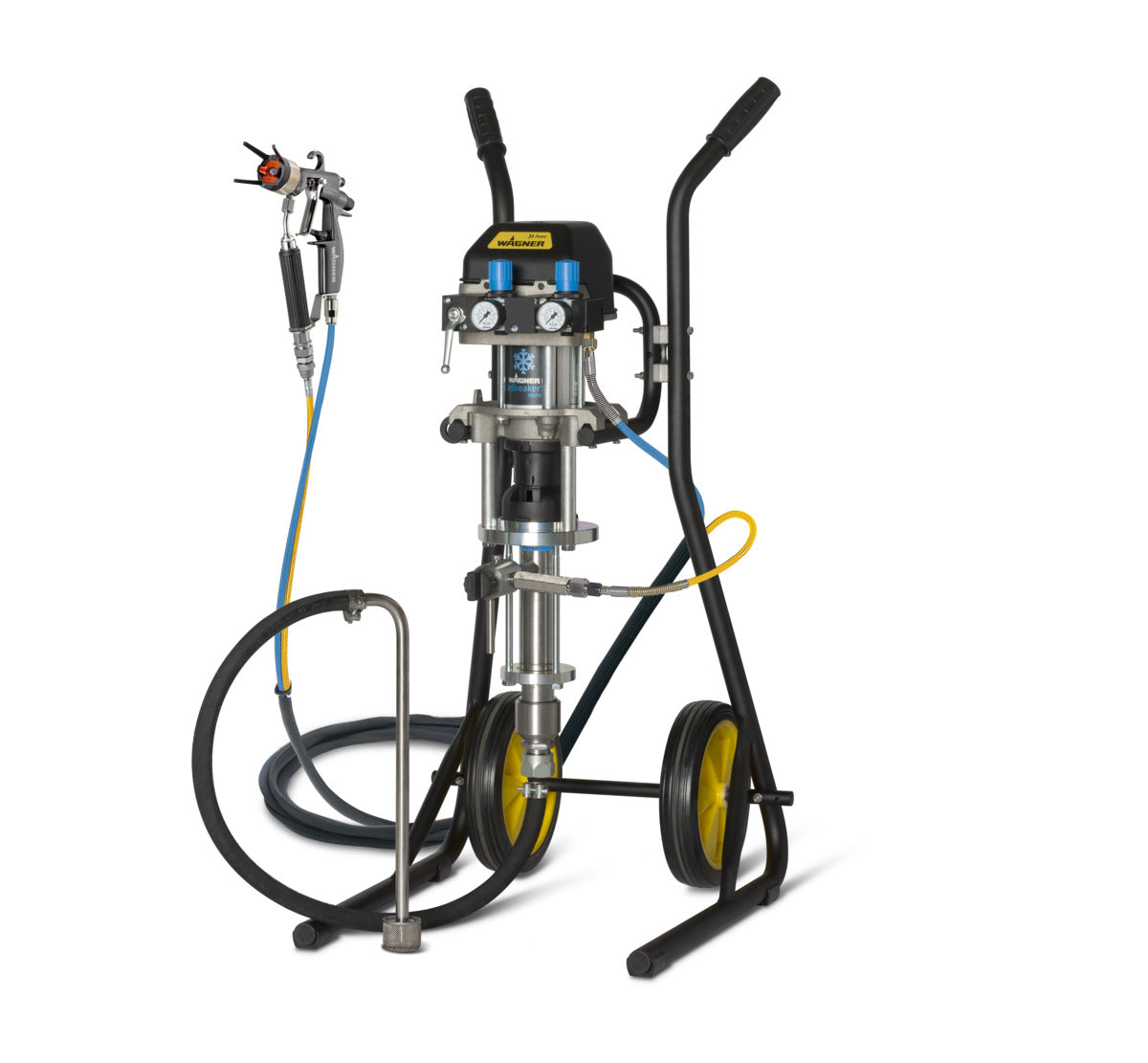 Puma ist als WAGNERS leistungsstärkste pneumatische Kolbenpumpe ideal für das Spritzen von Lacken, Grundierungen, Lasuren, Imprägnierungen, Ölen und Fetten. Da bereits bei einem geringen Lufteingangsdruck ab 1 bar gearbeitet werden kann arbeitet die Pumpe äußerst ökonomisch. Die farbführenden Teile sind aus Edelstahl und garantieren eine hohe Betriebssicherheit.Der modulare Aufbau der pneumatischen Pumpe bietet einen vielseitigen Einsatz. WAGNER bietet neben dem hier aufgeführten Airless Spraypack, zwei weitere AirCoat Versionen und eine mit Wandhalterung.